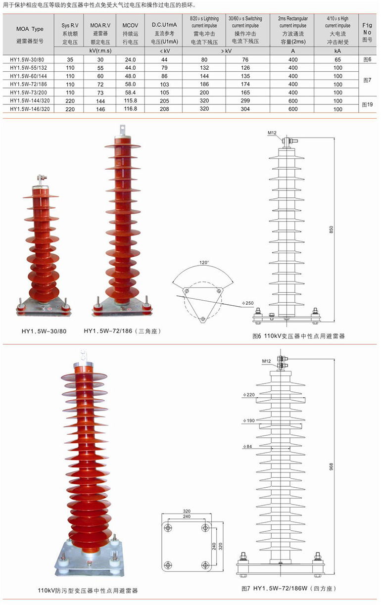 变压器中性点用、电容器用、电动机用等金属氧化锌避雷器