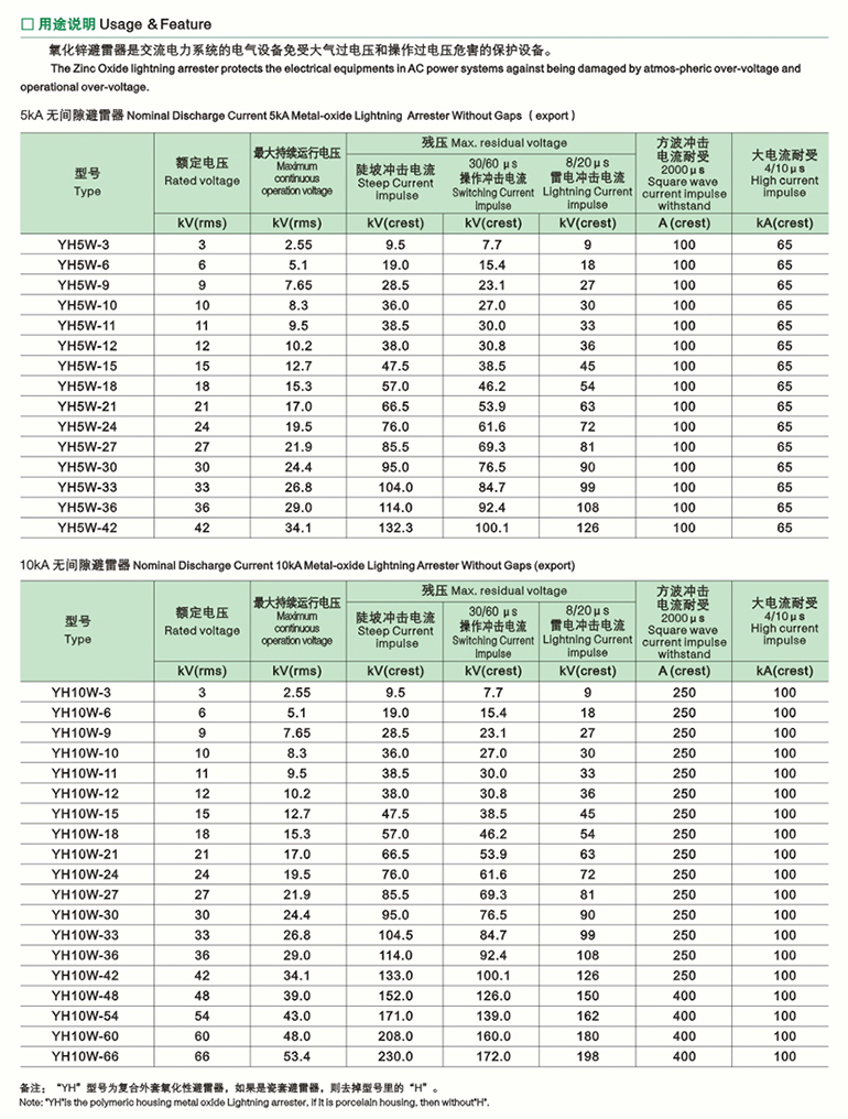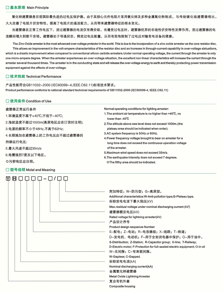 0.22-330kV交流系统用外套金属氧化锌避雷器